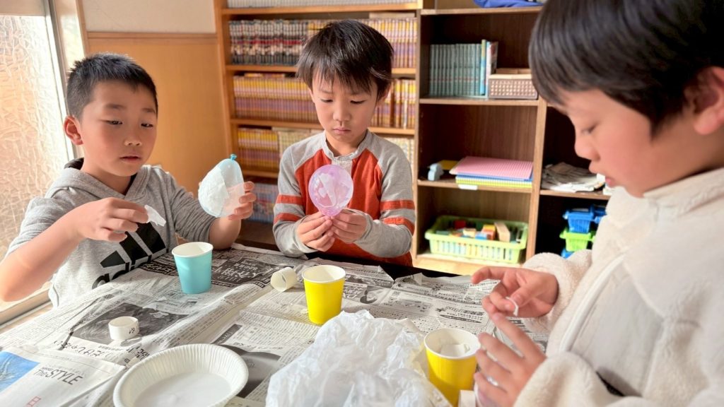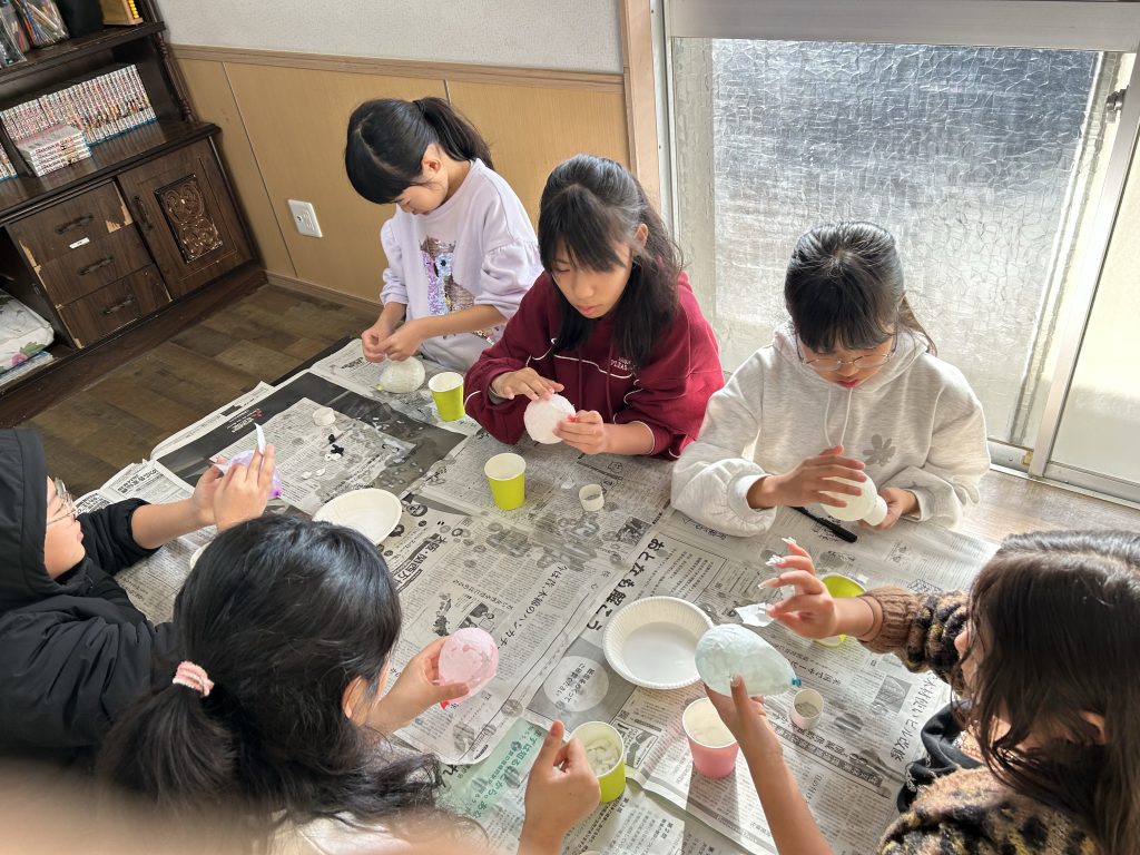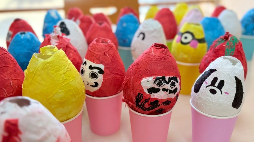 朝はいつも通り、お勉強タイム。その後は休む間もなく、起き上がり小法師作り (*^^)v